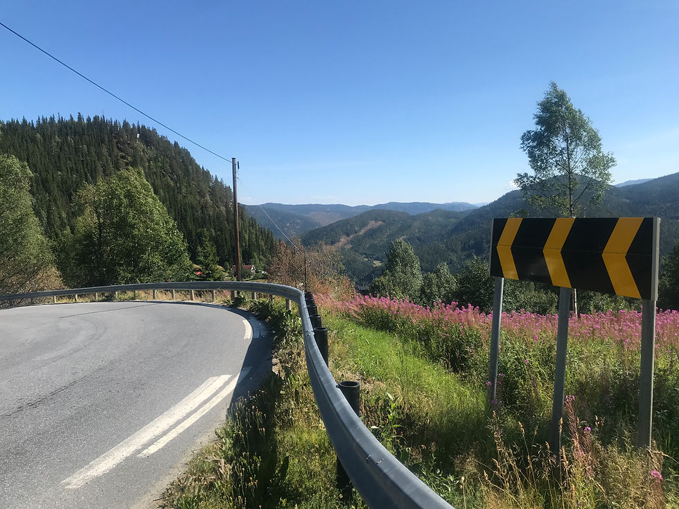 Skrevet av: Mathias Distanse: 70 km Akkumulert distanse: 2341,1 km Joanna har tydeligvis vært veldig snill det siste året, for i dag har det vært strålende sol og veldig varmt! Vi våknet i halv ni-tiden på Nesbyen camping og fikk kjenne på hvorfor denne byen har Norges varmerekord.. Vi kom oss ut av teltet og satte oss i skyggen for å kjøle oss ned litt, og startet dagen med sjokolademuffins - det er nemlig Joanna sin bursdag!! Hurra!! Det gikk litt tregt med pakkingen i varmen, men vi kom oss omsider avgårde. Vi stoppet i sentrum for å fylle på med litt proviant, og kjølte oss ned med en is hver. Så tok vi fatt på stigningen opp Rukkedalen. Vi hadde bestemt oss for å følge Fv214 mot Tunhovd, og så ta av på Fv120 til Rødberg, og vi er fornøyd med rutevalget. Men i den intense varmen ble det selvfølgelig tungt. De første 2,5 milene i Rukkedalen gikk jevnt oppover (fra ca 160 moh til ca 850 moh), og vi måtte ta flere pauser i skyggen. Da vi kom opp til Synstevatn flatet det litt ut, og vi nøt de fine omgivelsene med vannet og de grønne skogene. Vi svingte av mot Langedrag og hadde tre mil foran oss til Rødberg. Mot Langedrag gikk det nedover, før det flatet ut og gikk litt opp og litt ned frem til demningen i enden av Tunhovdfjorden. Normalt ville vi satt pris på det flate terrenget etter en så lang stigning, men pga varmen ble det blytungt. Omgivelsene var imidlertid flotte, og vi skjønner hvorfor det er så mange hytter her langs Tunhovdfjorden. Underveis fikk vi også nærkontakt med en rein med digre horn, men heldigvis spaserte den bort fra oss! Fra demningen i enden av Tunhovdfjorden var det noen kneiker før det gikk bratt ned til Rødberg. Det var interessant å se kraftanlegget nede i Rødberg, og her var det tydelig mye historie. Vi fant et bakeri med skygge, og spiste sen lunsj og softis. På grunn av varmen var vi begge ganske utslitt, og vi konkluderte med at planen om å sykle over Vegglifjell samme dag måtte skrinlegges. Vi tittet på kartet og bestemte oss for å sykle 1,5 mil til Norefjord camping i Nore. Til Nore syklet vi langs Fv40, og det gikk stort sett ned og bort. Det var lite trafikk, noe det har vært i hele dag faktisk, så den siste etappen gikk greit. Vel fremme i Nore ble det turens første bad på oss begge. Vannet i Norefjorden føltes ganske kaldt, men det var deilig å bli avkjølt! Og etterpå var det godt å slappe av på gresset og nyte en kald øl. Til middag ble det «dagens» - bratwurst, surkål, brun saus og pommes frites - på kroen rett ved campingen, og vi spanderte på oss lokalt øl til drikke. Det ble med andre ord ikke den store bursdagsfeiringen, men det tar vi igjen! Før vi la oss satt vi utenfor teltet og så på det blikkstille vannet og spiste moreller. Dette ble en varm og tung dag, men den avsluttet deilig!